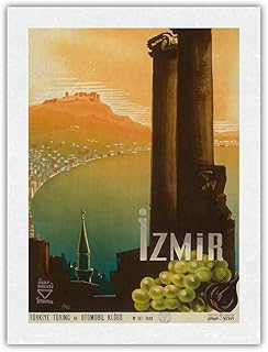 Izmir, Turquie – Turquie – Tourisme et Automobile Club – Affiche de voyage vintage par Ihap Hulusi Görey c.1940 – Impression sur papier de riz Unryu 45,7 x 61 cm