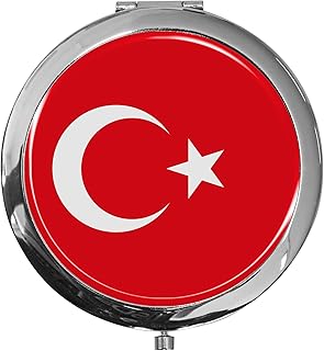 metALUm Premium - Miroir de Poche en métal chromé Drapeau Turquie avec Une Couche Noble de résine sythétique - Un pour Les Fans de Turquie