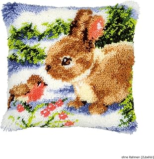 Vervaco Kit coussin au point noué Lapin&oiseau dans neige,Multicolore