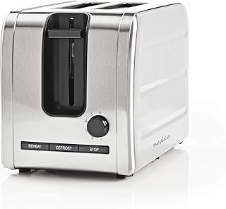 Nedis Grille pain Grille pain | Série en acier inoxydable | 2 Emplacements | Thermostat réglable: 6 | Fonction de dégivrage | Support à pain | Métal Métal 165 mm