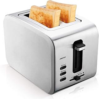 UBEGOOD Grille-pain, Acier Inoxydable Toaster 2 Fentes Larges Grille Pain avec Controle de 6 Temperature et Plateau de Miettes Amovible, Décongélation, Réchauffage, Annulation Fonctionnalités
