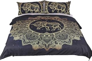 CHAOSE Ensemble De Literie Polyester-Coton Housse De Couette 3 Pièces (1 Housse De Couette + 2 Taies d'oreiller 48x74cm (Lignes directrices sur l'éléphant de l'Inde, 240x260 (2.2M Bed))
