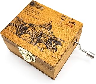 Demiawaking Boîte à musique à manivelle en bois antique avec boîte de musique, décoration cadeau pour anniversaire de Noël (La Vie en Rose)
