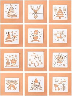 ZHOUZHOU 12 Pièces Pochoir Noel,pochoirs de Noël en Plastique réutilisables,Noël Dessin Peinture Pochoirs,Pochoirs pour Le Dessin de Noël 13x13cm,Scrapbooking DIY Dessin Craft Pochoir