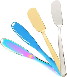 4 Pièces Professionnel Couteau à Beurre, Couteau à Beurre 3 en 1, Couteau à Beurre en Acier Inoxydable, pour Couper et étaler la Confiture de Fromage au Beurre, Argent / Or / Noir / Bleu