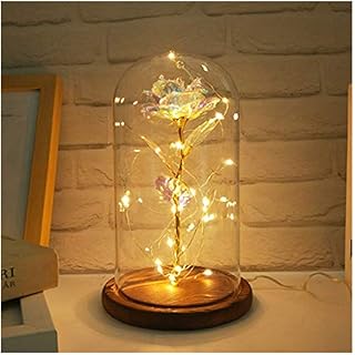 TiaQ Beauty and The Beast Rose Eternelle Romantique et Lumière LED Élégant Dôme en Verre Décoration de Cadeau fête des mères (A, M)
