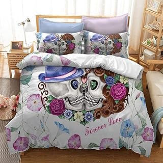 DXSX Housse de Couette de lit et taies d'oreiller Ensemble de Style Gothique Tête de Mort,Parure de Lit pour Enfants Garçons Filles Ados Hommes Chambre Décoration Cadeaux (Beauté, 220 x 240 cm)