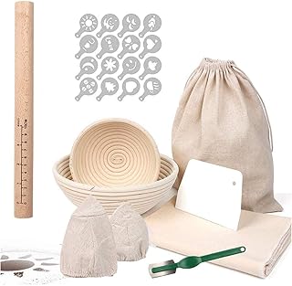 HOTOOLME Panier de fermentation rond - 16 cm + 22 cm - Avec cordes de boulanger, rouleau à pâtes, raclette, couteau à boulanger, panier à fermentation