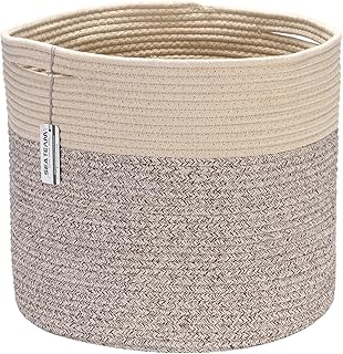Sea Team Panier de Rangement tissé Corde Coton Grande Taille avec poignées, Panier à Linge, Organisateur Coffre, Poubelle à vêtements pour Chambre d'enfant, 15 x 13 Pouces, Conception Ronde Ouverte