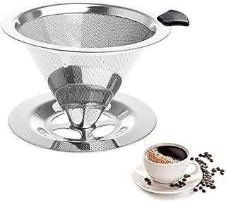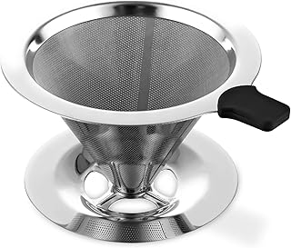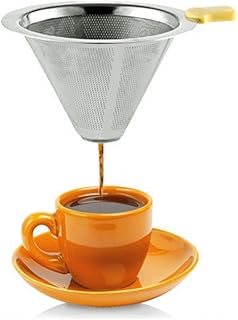 Double couche réutilisable filtres à café, EN ACIER INOXYDABLE filtre à café, café Dripper verser Plus de maille, café, verser sur filtre Cone Dripper 1–2 tasses de cuisine Fournitures – Arg