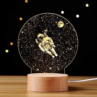 SUAVER 3D Lampe Optique Illusion Créatif Veilleuse LED Lampe de Table Enfant Lampe de nuit pour Chambre Chevet Table de Cadeau Surprise Deco Ambiance Créatif avec USB et base en bois(Astronaute)