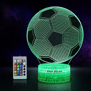 Veilleuse LED 3D Lampe Optique Illusion, Veilleuse Enfant Lampe de nuit, 7 Color Changing Desk USB Nouveauté LED Lampe de table Surprise Deco Ambiance Créatif avec Câble USB et Télécommande (Football)
