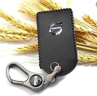 ontto Coque de clé de Voiture Compatible avec Volvo XC40 XC60 XC70 XC90 S60 S90 S80 C30 V70 V90 2017-2020 Étui Cas pour télécommande de clé Voiture en Cuir Protection de clé avec Porte-clés-Marron