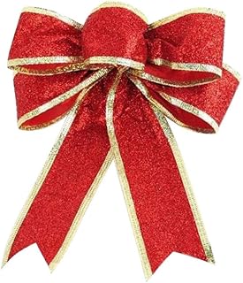 Redsa Lot de 10 nœuds de Noël en ruban pailleté - Décoration à suspendre pour sapin de Noël - Doré