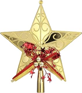 Amosfun Topper Sapin de Noel Plastique Étoile Noël Decoration Pointes de Sapin pour Arbre de Noël Décoration Maison de Vacances d'hiver 20cm (Doré)