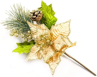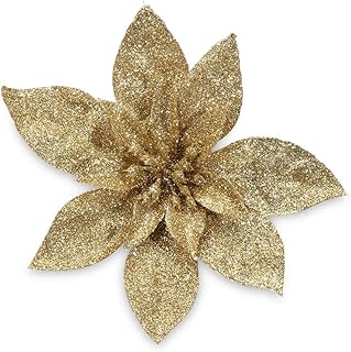 dressplus Lot de 10 poinsettia artificielles à suspendre pour décoration de sapin de Noël (15 cm, doré)