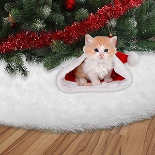 Vlovelife Jupe de Sapin de Noël Blanche 150 cm de Large en Fausse Fourrure, Tapis de Sapin de Noël en Peluche pour décoration de Noël, décoration de Maison de Vacances