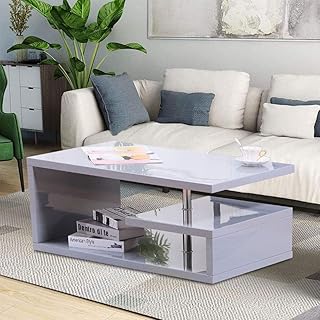 GOLDFAN Table Basse Rectangulaire en Bois Design Moderne Haute Brillance Table de Salon, Gris
