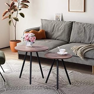 GOLDFAN Table Gigognes Lot de 2 Tables Basses Moderne Bois Table d'appoint Petite Table Bout de Canapé Ronde pour Salon Marron