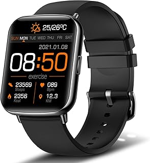 andfive Montre Connectée Homme Femmes, 1,69 Montre Intelligente avec Cardiofrequencemètre Moniteur de Sommeil, 24 Modes Sportifs, Smartwatch Etanche IP68 Podomètre Chronometre pour iOS et Android